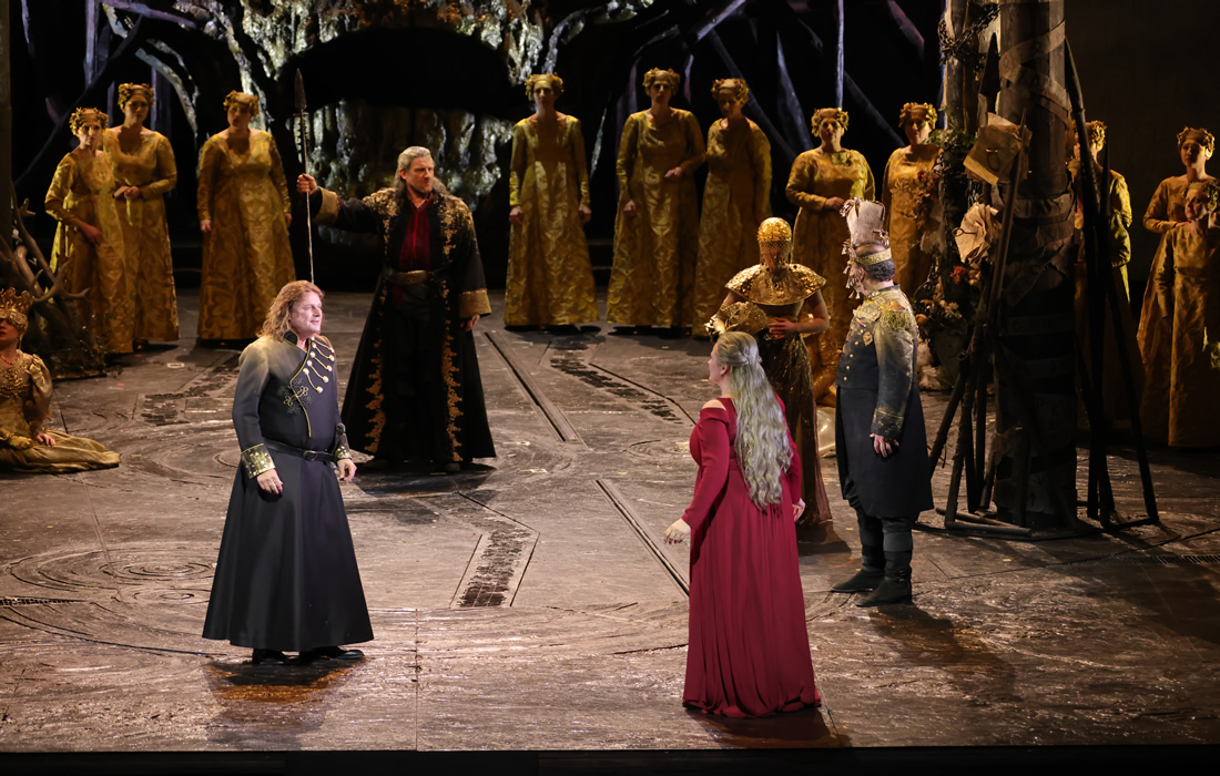 Riguardo il cast, Camilla Nylund è una Brünnhilde di notevole caratura, appena un poco oscillante in alcune ampie arcate vocali, comunque di grande spessore sonoro. Dal punto di vista interpretativo riesce a svelare i diversi atteggiamenti della donna innamorata, in seguito tradita, desiderosa di vendetta e annientata dall'inevitabile catastrofe. Solo in lei, come giustamente scrive Dahlhaus, “la libertà prende coscienza di sé”. Le sta accanto il Siegfried argenteo e giovanile di Klaus Florian Vogt. Se la voce non ha gli accenti eroici che il ruolo richiederebbe, il timbro chiaro ben delinea la fragilità del protagonista, costantemente in balia degli eventi. Nina Stemme dona inusitato rilievo all'intervento di Waltraute, breve ma importante nell'economia drammatica. A dispetto dell'età sfoggia un timbro intatto, un accento scultoreo, una dizione precisa, un fraseggio oltremodo incisivo e pregno di sfumature. La Stemme, che solo una manciata di anni fa era la Brünnhilde di riferimento, si dimostra ancora una volta artista di gran classe. Günther Groissböck è un Hagen a tratti rozzo nell'emissione, comunque perfettamente credibile nei panni del guerriero protervo. Il Gunther di Russell Braun è più vulnerabile che nobile, mentre eccellente appare la Gutrune di Olga Bezsmertna, impegnata anche come terza Norna. Eccellente l'Alberich di Johannes Martin Kränzle, buone le Norne e le figlie del Reno. Punto di forza di questa edizione è la lettura di Alexander Soddy. Il direttore britannico offre un'interpretazione vibrante nel passo narrativo, frastagliata nelle dinamiche e screziata da cangianti cromatismi. Il complesso tessuto motivico viene dipanato con estrema chiarezza, senza mai apparire algido ed evitando ogni tentazione retorica. Si pensi alla marcia funebre di Siegfried, toccante senza parossismi sonori o effetti superflui. L'orchestra, in grande spolvero, mostra totale sintonia con il suo direttore. Distante da qualsiasi ieratica monumentalità, il Wagner di Soddy appare estremamente moderno nel suo inesorabile incedere drammatico. Il Ring verrà ripreso in due cicli completi il prossimo marzo. Sul podio si alterneranno lo stesso Soddy e Simone Young.