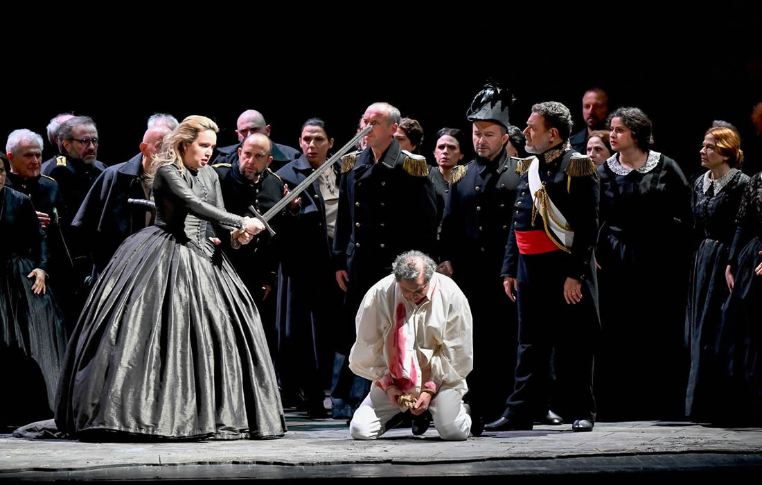 Il Teatro Regio di Parma, i Teatri di Piacenza e il Teatro Comunale di Modena coproducono lo spettacolo, approdato come novità su queste piazze nel 2023 (ma già portato in giro per l'Europa) e ora riproposto. La decantazione di tre anni non ha apportato miglioramenti o fatto emergere significati altri rispetto a quella data. L'idea di fondo della regia di Nicola Berloffa è quella di inscenare una storia senza tempo, dove le dinamiche di un popolo sconfitto che anela alla libertà, al riscatto della propria dignità ferita, è uguale in ogni epoca, e le guerre, mutatis mutandis, si somigliano tutte. Ecco allora le scene di Andrea Belli spostare l'azione dalla Gallia romana in un non meglio identificato castello diroccato ottocentesco, coi segni del degrado alle pareti, cèntine a vista sugli archi delle porte, le finestre oscurate da assi di legno inchiodate, donde la luce penetra e filtra grazie a indovinati tagli obliqui, a cura di Simone Bovis. Gli ex Galli vi sono reclusi come in attesa di qualcosa che tarda a venire, raffigurati come un manipolo di patrioti raccogliticci e infermi, zoppicanti, con grucce, o già morti su lettighe di fortuna. Sono i sopravvissuti agli scontri, insomma, che nei costumi di Valeria Donata Bettella appartengono a un Ottocento vago e volutamente senza riferimenti temporali precisi – il cappello da bersagliere di uno dei coristi si affianca alle mostrine dorate, alla fusciacca rossa e alla fascia trasversale bianca su uniforme nera di Oroveso –; la stessa Norma appare come una gran dama, ora in abito bianco, ora scuro. Si contrappone a ciò la stanza come di nursery dei figli di Norma, in un'ala del palazzo che si suppone scampata alla distruzione, dai colori molto più chiari, avvolta da una luce più calda e quasi “ritagliata” nella scurezza imperante del resto della scena, come oasi di sicura intimità (assai poco funzionale risulta però far sgusciare via i figli di Norma dalla stessa porta da cui entra un secondo dopo Pollione, e poco ci manca che si salutino per le scale); m a, volendo anche dar credito alla visione di Berloffa, se è vero che la storia è senza tempo, la trasposizione da un'epoca precisa – la conquista della Gallia – a un'altra epoca precisa – il Risorgimento, sebbene nella sua vaghezza – annulla il supposto valore di un cambio di ambientazione. E ci perde, senza un guadagno netto, la coerenza librettistica, che fa finire Norma sotto il linciaggio delle donne del popolo (esatto, niente rogo, stavolta) e citare proconsoli e vestali in pieno Ottocento (ma questo i sostenitori dell'ammodernamento registico tout court lo vedono come un male necessario e manco ci fanno più caso). Insomma, un'occasione sprecata per una riflessione un po' meno ovvia di quella che la guerra, bene o male, sia sempre uguale. Aveva quindi ragione Wagner di ricorrere al mito, per trasmettere concetti senza tempo con una storia senza tempo?