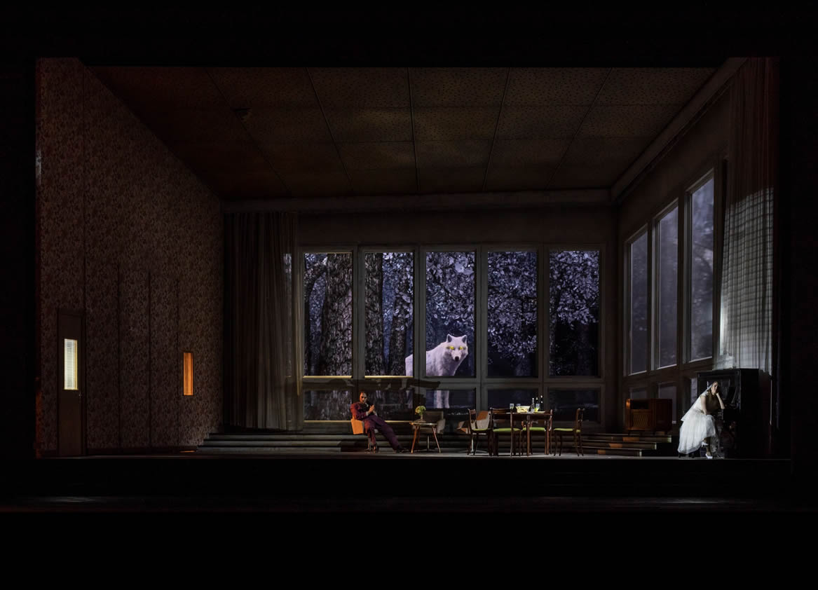 La creazione dell'atmosfera si compie lentamente, e conclusa l'ouverture – qui proposta nella seconda versione composta da Beethoven – viene proiettata sul sipario nero una frase di Heiner Müller, drammaturgo di Berlino Est che visse in prima persona la dissoluzione della DDR – Ho Fatto un sogno/Era un incubo/Mi sono svegliato e tutto era a posto – prologo scritto alla prima scena. In una prospettiva centrale, un'opprimente scatola/stanza dai controsoffitti ammuffiti, é ricostruito un ambiente che riunisce gli squallori delle sedi di partito, le sale d'attesa polverose e gli spazi comuni di un centro di riabilitazione; a fargli da contrappunto ci sono grandi vetrate disposte su due lati, dalle quali si staglia un luminoso e verdeggiante bosco. In questa sorta di capsula temporale, si rincorrono le eccellenze musicali: l'orchestra diretta dal Maestro Fisch é precisa e sontuosa nel delineare crescendo millimetrici e capace di regalare un'ariosità eccezionale, mentre i cantanti dimostrano doti tecniche all'altezza della complessità insita nell'opera. Christina Gansch é una Marzelline dai modi pacati, voce giovane, fresca e dotata di quella timidezza apparente che scompare nei passaggi in cui si richiedono potenza e colore; il carceriere Rocco é interpretato da Petri Lindroos, un padre forse un po' troppo giovane nella realizzazione del personaggio, ma sicuramente un'ottima voce, chiara nella dizione, vibrante e solida. Jaquino é Sascha Emanuel Kramer, bravo cantante non sempre supportato da eguali doti attoriali, mentre Erin Cave, Florestan, unisce buone capacità drammatiche ad una tecnica impeccabile, dove l'agilità tenorile quasi arriva per colore e pienezza a fondersi con la profondità timbrica propria di un baritono. Nicolò Donini, Don Fernando, sostiene una buona prova, riuscendo a sostenere con voce e carattere il personaggio. Il soprano Simone Schneider, voce carnosa, strutturata, potente, ci regala una Leonore di grandissima qualità, raggiungendo, anche grazie all'ottima regia, una dolcezza e un'umanità commovente nel duetto O namenlose Freude! Superbia, crudeltà, risolutezza perfida spettano invece alla controparte maschile, Don Pizarro, un Lucio Gallo straordinario nel canto e nell'interpretazione di un governatore con le sembianze di un dispotico dirigente di partito dal triste abito beige.