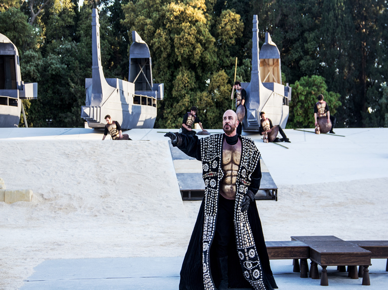L'Aulide sul Temenite (al Teatro antico di Siracusa per la seconda produzione del 51° Ciclo di spettacoli classici dell'Inda, Ifigenia in Aulide di Euripide, regìa di Federico Tiezzi, scene di Pier Paolo Bisleri) è pronta ad accogliere delitto e castigo.