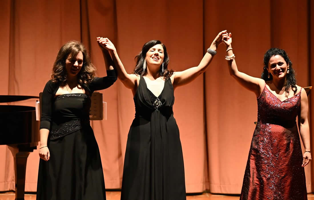 Ogni brano è stato eseguito con sentito trasporto e passionale afflato lirico dal soprano Manuela Cucuccio e dal mezzosoprano Anna Pennisi, che assieme a un'appropriata perizia tecnica hanno anche saputo imprimere intensità espressiva e significativa veemenza passionale specialmente nei duetti, dove il loro affiatamento e la loro sintonia si rivelava quasi perfetta. Le due valide cantanti sono state accompagnate con estrema eleganza e discrezione da Giulia Russo che si anche esibita in un arrangiamento per solo pianoforte del Preludio dell'atto primo dell'opera di Pacini Il Corsaro . Ai calorosi applausi del pubblico convenuto le artiste hanno risposto riproponendo il brano “Abbracciami!” da Maria, Regina d' Inghilterra.