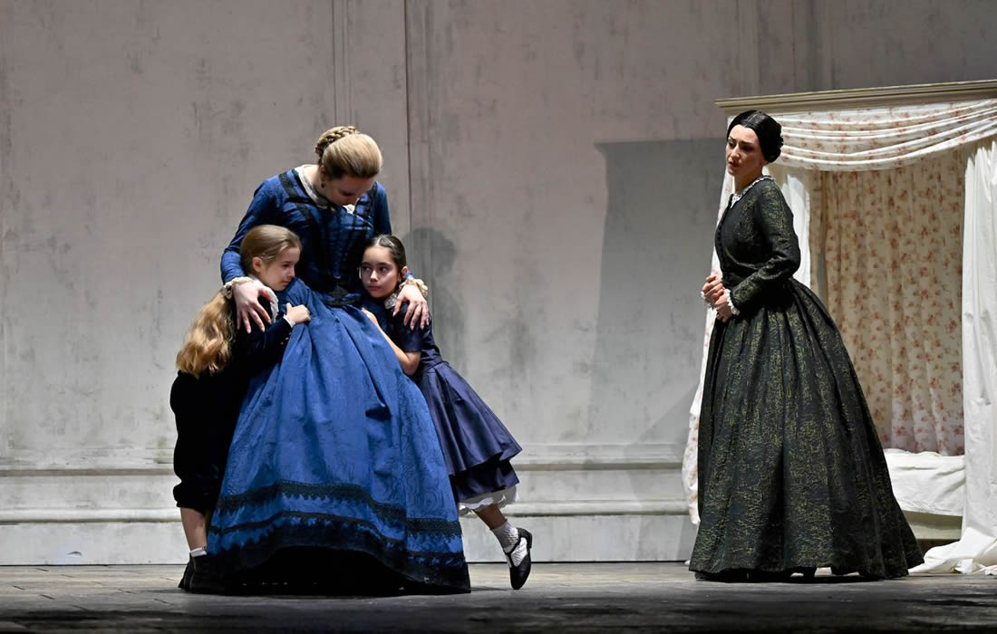 Il Teatro Regio di Parma, i Teatri di Piacenza e il Teatro Comunale di Modena coproducono lo spettacolo, approdato come novità su queste piazze nel 2023 (ma già portato in giro per l'Europa) e ora riproposto. La decantazione di tre anni non ha apportato miglioramenti o fatto emergere significati altri rispetto a quella data. L'idea di fondo della regia di Nicola Berloffa è quella di inscenare una storia senza tempo, dove le dinamiche di un popolo sconfitto che anela alla libertà, al riscatto della propria dignità ferita, è uguale in ogni epoca, e le guerre, mutatis mutandis, si somigliano tutte. Ecco allora le scene di Andrea Belli spostare l'azione dalla Gallia romana in un non meglio identificato castello diroccato ottocentesco, coi segni del degrado alle pareti, cèntine a vista sugli archi delle porte, le finestre oscurate da assi di legno inchiodate, donde la luce penetra e filtra grazie a indovinati tagli obliqui, a cura di Simone Bovis. Gli ex Galli vi sono reclusi come in attesa di qualcosa che tarda a venire, raffigurati come un manipolo di patrioti raccogliticci e infermi, zoppicanti, con grucce, o già morti su lettighe di fortuna. Sono i sopravvissuti agli scontri, insomma, che nei costumi di Valeria Donata Bettella appartengono a un Ottocento vago e volutamente senza riferimenti temporali precisi – il cappello da bersagliere di uno dei coristi si affianca alle mostrine dorate, alla fusciacca rossa e alla fascia trasversale bianca su uniforme nera di Oroveso –; la stessa Norma appare come una gran dama, ora in abito bianco, ora scuro. Si contrappone a ciò la stanza come di nursery dei figli di Norma, in un'ala del palazzo che si suppone scampata alla distruzione, dai colori molto più chiari, avvolta da una luce più calda e quasi “ritagliata” nella scurezza imperante del resto della scena, come oasi di sicura intimità (assai poco funzionale risulta però far sgusciare via i figli di Norma dalla stessa porta da cui entra un secondo dopo Pollione, e poco ci manca che si salutino per le scale); m a, volendo anche dar credito alla visione di Berloffa, se è vero che la storia è senza tempo, la trasposizione da un'epoca precisa – la conquista della Gallia – a un'altra epoca precisa – il Risorgimento, sebbene nella sua vaghezza – annulla il supposto valore di un cambio di ambientazione. E ci perde, senza un guadagno netto, la coerenza librettistica, che fa finire Norma sotto il linciaggio delle donne del popolo (esatto, niente rogo, stavolta) e citare proconsoli e vestali in pieno Ottocento (ma questo i sostenitori dell'ammodernamento registico tout court lo vedono come un male necessario e manco ci fanno più caso). Insomma, un'occasione sprecata per una riflessione un po' meno ovvia di quella che la guerra, bene o male, sia sempre uguale. Aveva quindi ragione Wagner di ricorrere al mito, per trasmettere concetti senza tempo con una storia senza tempo?