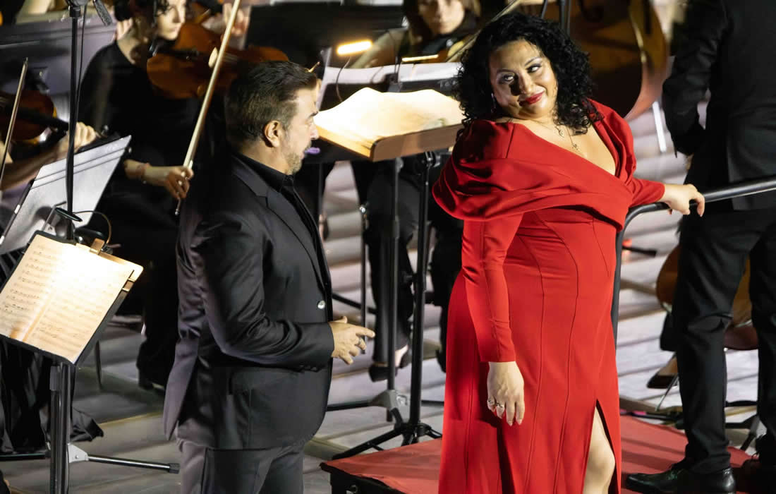 Anita Rachvelishvili ha deliziato l'intera cavea con la sua voce vigorosa e timbrata da mezzo-soprano lirico centrale, attraverso la quale riusciva ad insufflare passione, fascino e seduzione in ogni melodia intonata. L'ampiezza dell'estensione unita ad una ottima tecnica di controllo del suono e del fraseggio aderivano in modo preciso e appropriato alla tessitura affidata al personaggio eponimo. Il tenore Eduardo Sandoval ha da subito rivelato una vocalità densa e corposa con una zona acuta sempre morbida e vellutata dove gli acuti si evidenziavano puliti, pieni e coperti. Il baritono Liu Haoran (Escamillo) ha sfoggiato estremo equilibrio e compostezza vocale, alquanto significativa ci è parsa in particolare l'interpretazione del couplet Votre toast… je peux vous le rendre…Toréador engarde, reso con eleganza e distinzione. Particolarmente efficace è stata la non certo facile esecuzione del quintetto tratto dal secondo atto Nous avons en tête un affaire al quale hanno preso parte gli abili e valenti Alberto Munafò Siragusa (Remendado), Leonora Ilieva (Frasquita), Davide Benigno (Dancairo), Antonella Arena (Mercedes). Bene anche Emanuele Collufio nella parte di Zuniga.