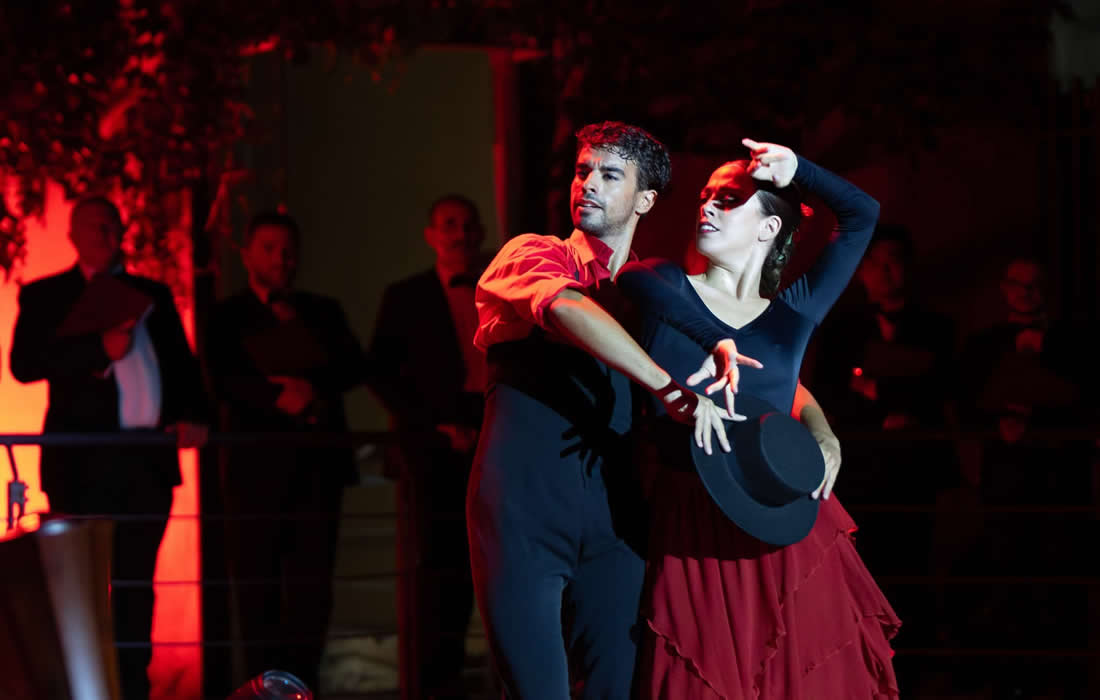 Il Coro Lirico Siciliano, preparato e diretto come sempre con estrema cura e professionalità dal maestro Francesco Costa, ha svolto in modo mirabile e musicalmente funzionale al contesto generale i suoi interventi. L'orchestra in residence del Festival Lirico dei Teatri di Pietra diretta da Costantin Rouits ha dato sicuramente il suo valido contributo alla riuscita del concerto, eseguendo con estrema abilità e maestria alcuni brani strumentali e alcuni entracte sui quali si sono esibiti due ballerini di alta classe: Javier Moreno e Isabelle Ponce, quest'ultima anche autrice delle coreografie, che, con le loro sinuose movenze e figure, hanno impresso una marcia in più all'intero spettacolo, riuscendo a offrire una connotazione immaginifica di profumata dissolvenza ed evanescenza. Teatro affollato soprattutto di turisti stranieri che hanno apprezzato lo spettacolo tributandogli calorosi e prolungati applausi. La serata è stata presentata e condotta, con dovizia di particolari sulla vita di George Bizet e sulla sua sfavillante Carmen, dal critico musicale Enrico Stinchelli.