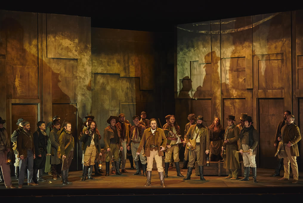 Ernani mancava al Maggio da sessant'anni. Per la ripresa del titolo si affida il nuovo allestimento a Leo Muscato, che decide di ambientare l'opera, anziché nel 1519, negli anni contemporanei alla sua stesura (due dati storici: quinta opera di Verdi, la prima scritta con la collaborazione di Francesco Maria Piave e non per La Scala, ha il suo battesimo alla Fenice di Venezia il 9 marzo 1844). Il perché ce lo spiega lui: «L'ambientazione che abbiamo scelto […] ci è stata suggerita dallo spirito rivoluzionario e anche un po' barricadiero del coro Si ridesti il Leon di Castiglia», e ben si sa quanto patriottismo quel coro abbia ispirato, convertendo Castiglia in Venezia. Ora, benché continui a non capire perché ci si debba immaginare qualcosa di diverso dal libretto, e pur dando luogo a pesanti anacronismi (come mandare in crisi uno studente di storia: Carlo V incoronato nel 1844, vedi Ernani), se si astrae la vicenda dal contesto storico, il tutto può ancora funzionare, semplificando l'opera in una lotta di classe tra i rivoluzionari borghesi da una parte – abbigliati come nelle ricostruzioni storiche per l'Unità d'Italia: casacche, bandoliere, foulard – e il potere costituito dall'altro – fatto di uniformi, fasce, mostrine e alamari: costumi accattivanti di Silvia Aymonino –, l'insieme condito di una buona trama di amore, vendetta e onore.