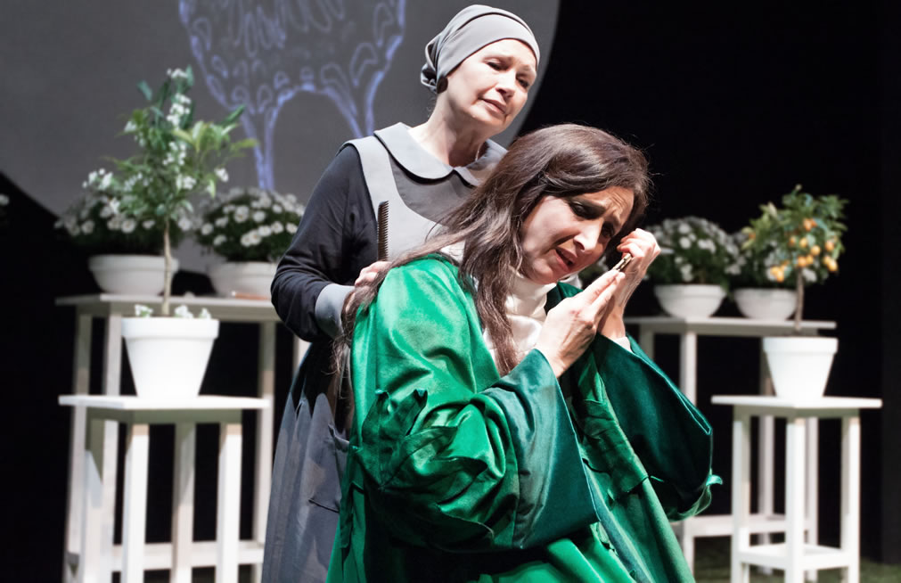 Con eccellente dizione Ileana Rigano ha tracciato in lunghi assolo l'antefatto della vicenda, dando al personaggio di Teodata un'umanità dolente ma sempre composta e misurata; Antonio Caruso, nel ruolo del Dottore, ha reso con energia il distacco del suo personaggio, l'unico che sa di dover trattare Isabella come una malata, e che forse è il solo ad essere conscio che non c'è rimedio. Algido quando doveva, è riuscito a trovare accenti di compassione sincera nel dialogo con Teodata e ha ben reso la condiscendenza del medico accompagnando la follia di Isabella. Bravi anche Chiaraluce Fiorito, Beatrice, e i giovani Daniele Sapio e Antonio Starrantino, rispettivamente Virginio e Panfilo.